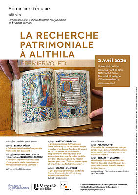 Jeudi 2 avril, salle Froissart et en hybride. Séminaire d’équipe : La recherche patrimoniale à Alithila (premier volet)
